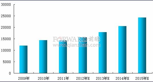 2012-2015年中國(guó)鉛酸蓄電池產(chǎn)量預(yù)測(cè)(單位:萬(wàn)kvah)
