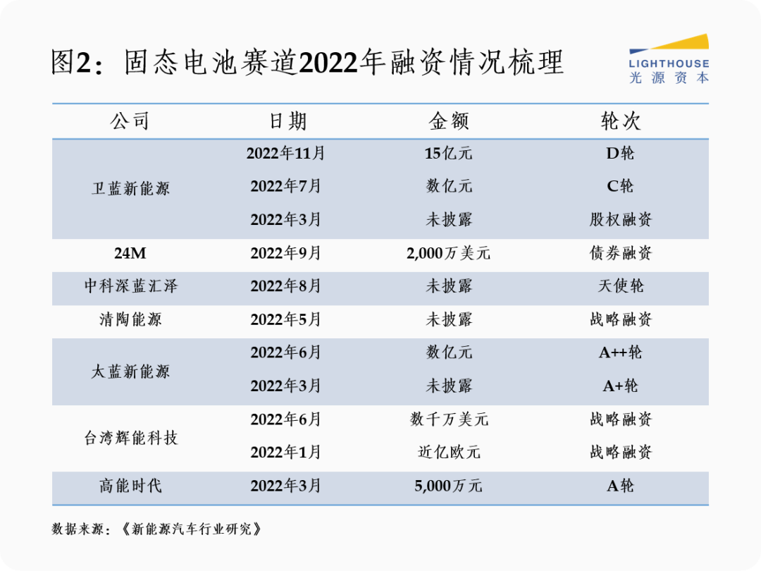 2022年以來,面對廣闊的發(fā)展前景,PE/VC 資金密集流向固態(tài)電池賽道,鋰礦、動力電池、車企等產(chǎn)業(yè)鏈各環(huán)節(jié)的上市公司更是加快了對固態(tài)電池的布局,市場整體看好固態(tài)電池企業(yè)的未來發(fā)展。