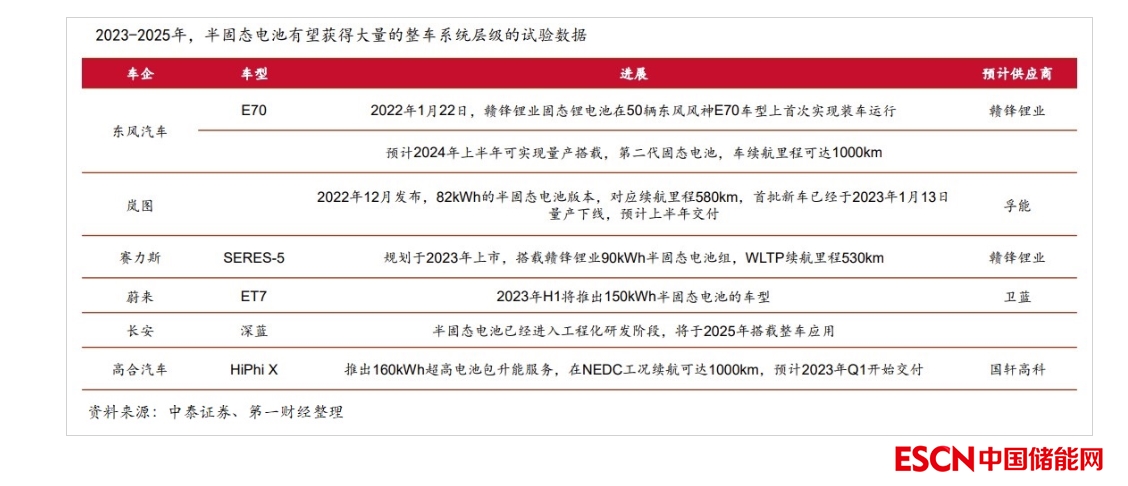 公開資料顯示,2022年以來一批領先的半固態(tài)電池企業(yè)先后發(fā)布車規(guī)級電池,隨后蔚來發(fā)布ET7、東風發(fā)布E70、嵐圖發(fā)布追風等搭載半固態(tài)電池的車型,市場普遍預計半固態(tài)電池的商業(yè)化轉折點會在2024~2025年。