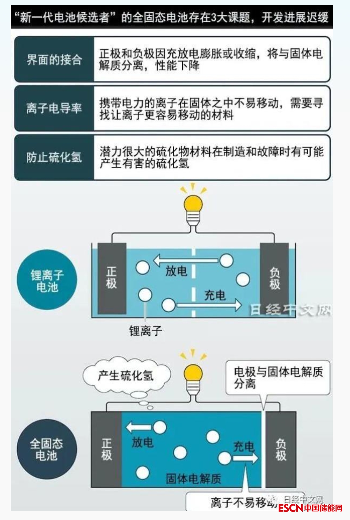 不過(guò),《日經(jīng)中文網(wǎng)》在一篇最新的文章中最新指出,全固態(tài)電池最初被期待在2020年代前半期就搭載于純電動(dòng)汽車,但開(kāi)發(fā)速度緩慢,目前看來(lái),其量產(chǎn)仍然需要邁過(guò)三道難關(guān)。