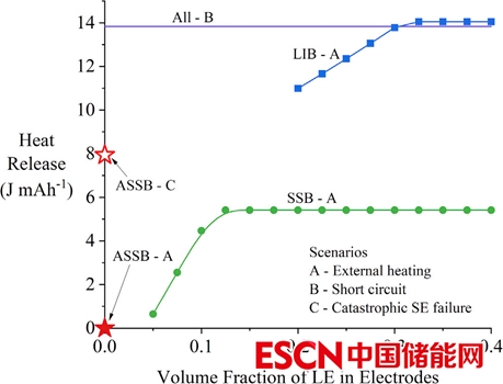 結(jié)論:研究人員分析了固態(tài)電池、全固態(tài)電池和液態(tài)電解質(zhì)鋰離子電池在極端情形下安全問題,盡管文章并未考慮在高溫下固態(tài)電解質(zhì)與負(fù)極(如金屬鋰)的反應(yīng),但也較為充分的說(shuō)明與常規(guī)鋰離子電池相比,高能量密度全固態(tài)電池和添加少量液態(tài)電解質(zhì)的固態(tài)電池可能沒有安全優(yōu)勢(shì)。