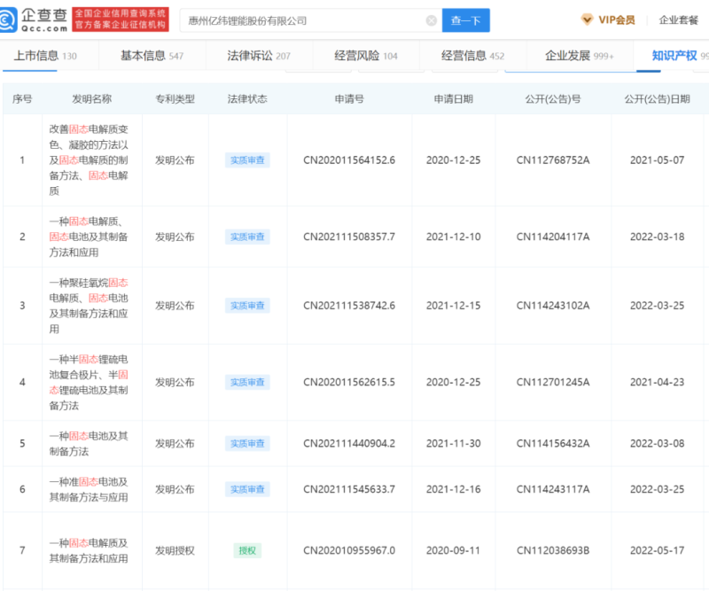 億緯鋰能部分固態(tài)電池專(zhuān)利