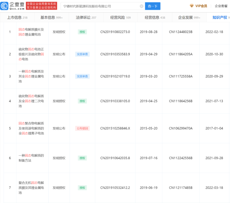 寧德時(shí)代部分固態(tài)電池專(zhuān)利
