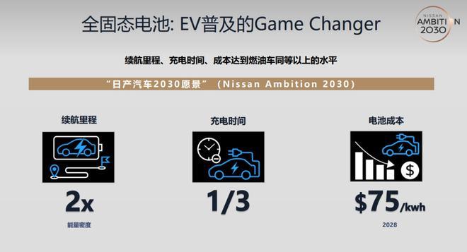 全固態(tài)電池技術(shù)能有效降低電池成本。日產(chǎn)汽車計(jì)劃到2028財(cái)年,這種電池能將電池組成本降至每千瓦時(shí)75美元。未來(lái),將成本進(jìn)一步降低至每千瓦時(shí)65美元,以實(shí)現(xiàn)電動(dòng)車型和燃油車型成本持平。
