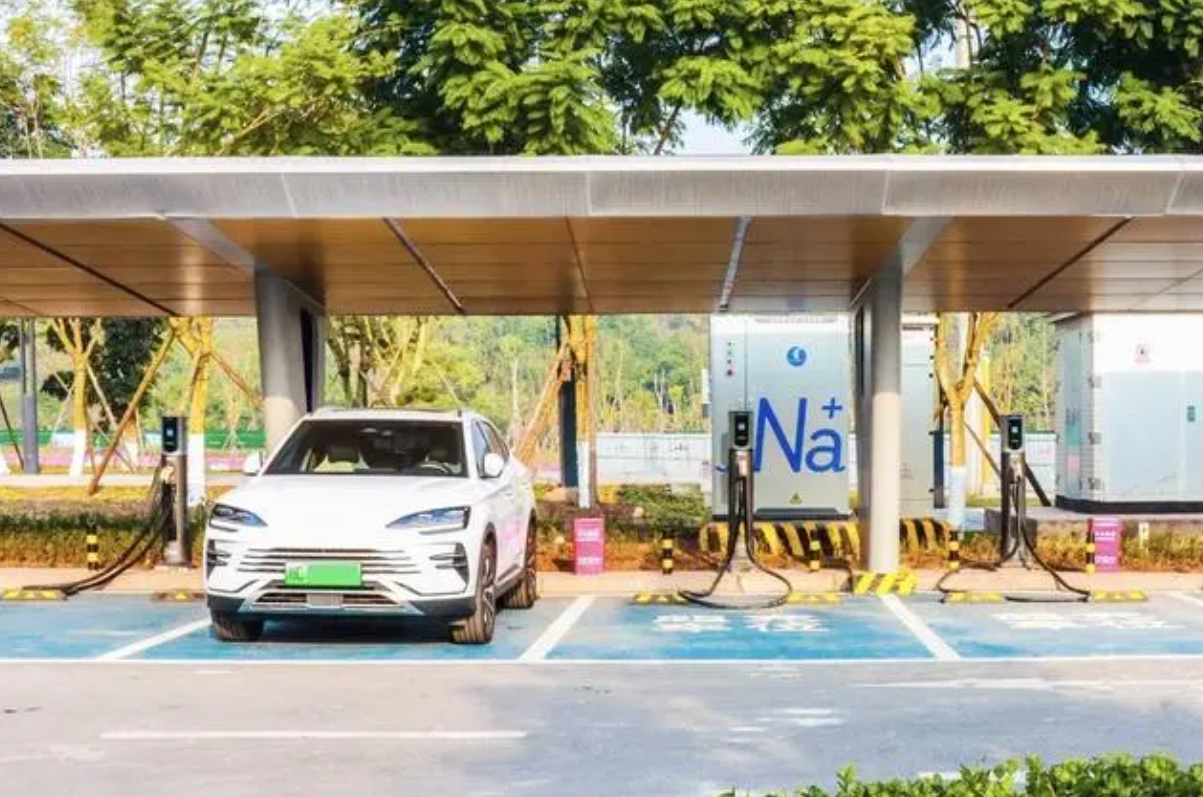 在自貢高投集團(tuán)公司辦公區(qū)停車(chē)場(chǎng),印有藍(lán)色“Na+(鈉離子)”標(biāo)志的興儲(chǔ)世紀(jì)50kW/105kWh工商業(yè)儲(chǔ)能柜醒目亮眼,正源源不斷地為場(chǎng)內(nèi)的新能源汽車(chē)輸入電能。