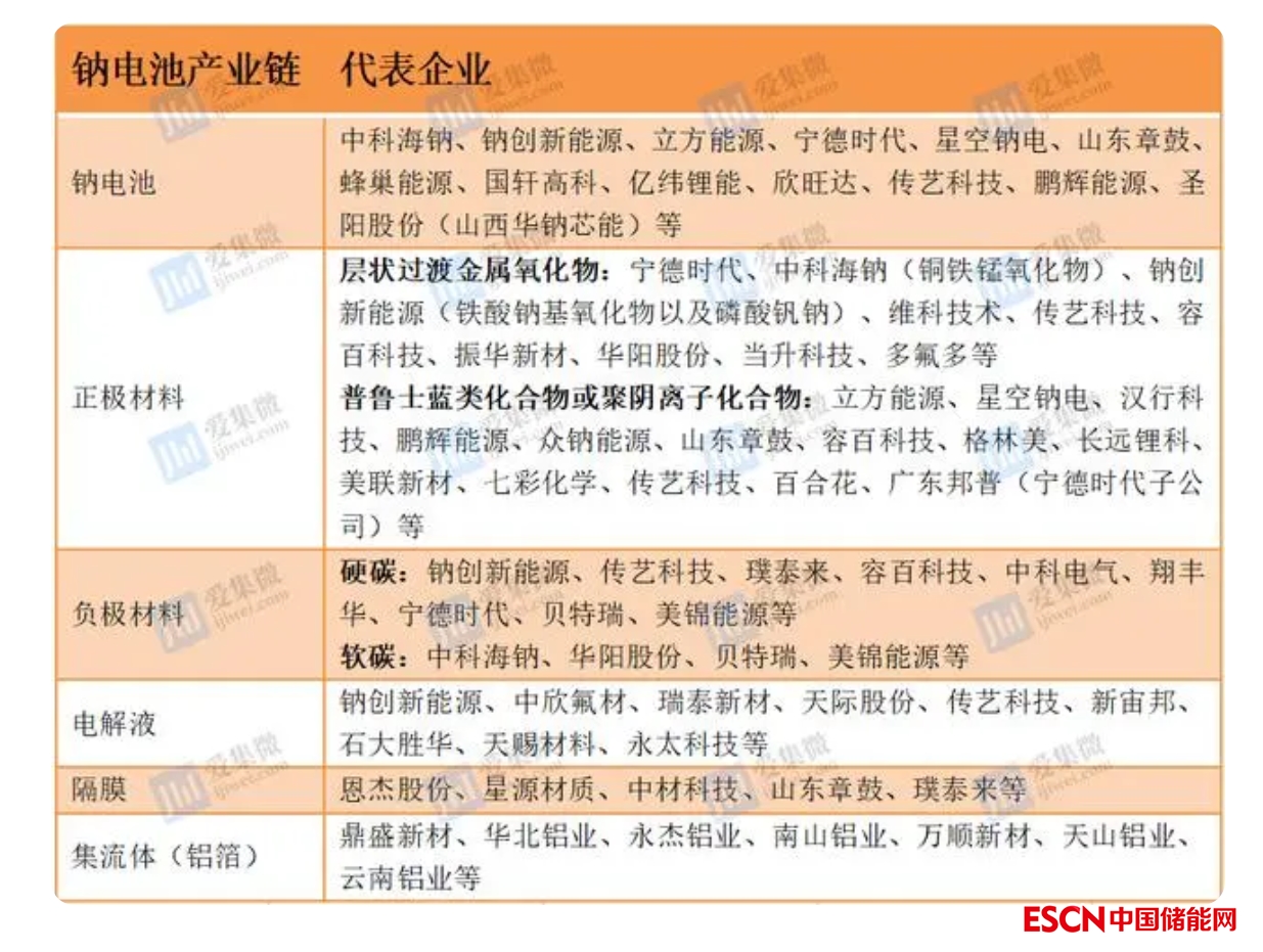 中國鈉電池產(chǎn)業(yè)鏈企業(yè)盤點(來源:根據(jù)公開信息整理)