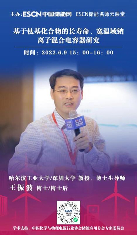 6月9日下午15:00-16:00,中國(guó)儲(chǔ)能網(wǎng)邀請(qǐng)哈爾濱工業(yè)大學(xué)教授、博士生導(dǎo)師王振波做客“ESCN儲(chǔ)能名師云課堂”(在線直播),為大家分享《基于鈦基化合物的長(zhǎng)壽命、寬溫域鈉離子混合電容器研究》主題報(bào)告。歡迎業(yè)界同仁在線學(xué)習(xí)與交流。