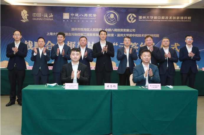中國儲(chǔ)能網(wǎng)訊:近日,甌海區(qū)人民政府、中建八局投資發(fā)展公司、上海大學(xué)有機(jī)復(fù)合污染控制工程教育部重點(diǎn)實(shí)驗(yàn)室、溫州大學(xué)碳中和技術(shù)創(chuàng)新研究院,舉行四方戰(zhàn)略合作框架協(xié)議“云簽約”儀式。市領(lǐng)導(dǎo)張健、王振勇,溫州大學(xué)領(lǐng)導(dǎo)謝樹華、趙敏、王舜,溫州大學(xué)碳中和技術(shù)創(chuàng)新研究院院長侴術(shù)雷,區(qū)領(lǐng)導(dǎo)曾瑞華、劉云峰、林照光、范學(xué)序等出席溫州會(huì)場(chǎng)簽約儀式。中國工程院院士、上海大學(xué)黨委常委、副校長吳明紅及其團(tuán)隊(duì),中建八局副總經(jīng)理儲(chǔ)小彬,中建八局投資公司黨委書記、董事長賈海慶等出席上海會(huì)場(chǎng)簽約儀式。