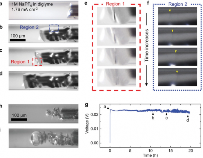 科學(xué)家們能夠通過(guò)一個(gè)特制的透明設(shè)備實(shí)時(shí)觀察電池性能,這使他們能夠發(fā)現(xiàn)不穩(wěn)定性和被稱為樹(shù)枝狀的致命結(jié)構(gòu)的形成,這些結(jié)構(gòu)導(dǎo)致電池短路和失效。這使該團(tuán)隊(duì)能夠做出調(diào)整,例如減少電解液中的水含量,以限制與堿金屬鈉的反應(yīng),這通常會(huì)導(dǎo)致樹(shù)枝狀結(jié)構(gòu)的產(chǎn)生。