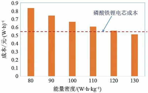 圖2 不同能量密度的鈉離子電池預(yù)估價格圖