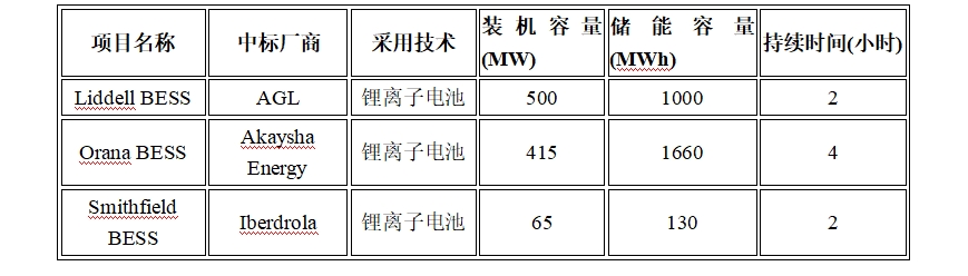 這一輪中標(biāo)的項(xiàng)目并沒(méi)有長(zhǎng)時(shí)儲(chǔ)能系統(tǒng)(LDES)。與其相反,在三個(gè)中標(biāo)的電池儲(chǔ)能項(xiàng)目中,有兩個(gè)是持續(xù)時(shí)間為2小時(shí)的電池儲(chǔ)能系統(tǒng),另一個(gè)是4小時(shí)的電池儲(chǔ)能系統(tǒng)。這三個(gè)電池儲(chǔ)能項(xiàng)目的總裝機(jī)容量為980MW,儲(chǔ)能容量2790MWh。中標(biāo)者名單如下表所示: