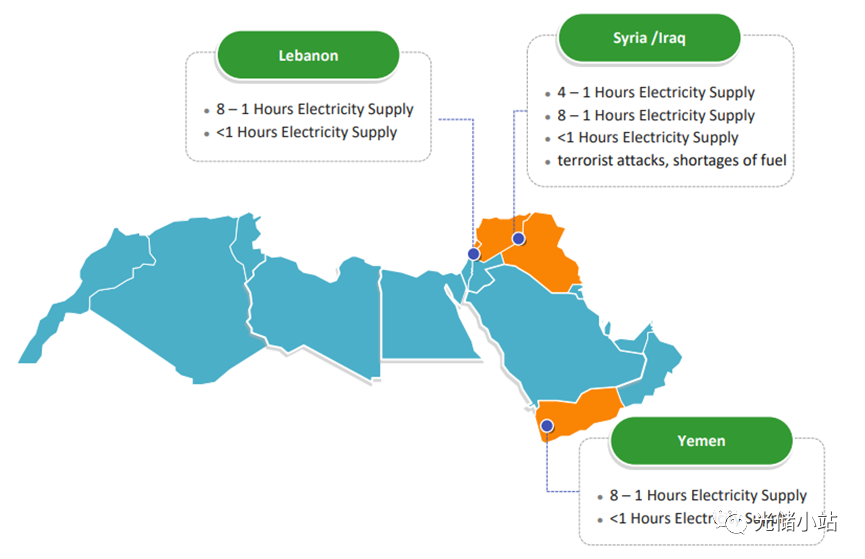 由于地緣政治風險等因素,用戶側(cè)儲能需求集中體現(xiàn)在黎巴嫩,也門,敘利亞和伊拉克等地區(qū),這些需求集中體現(xiàn)在對于小于1h的備電需求,以及1h-4h或者1h-8h的直接電力供給需求。