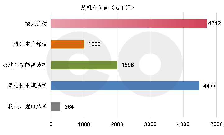 圖2 CAISO電源配置和最大負(fù)荷對比情況