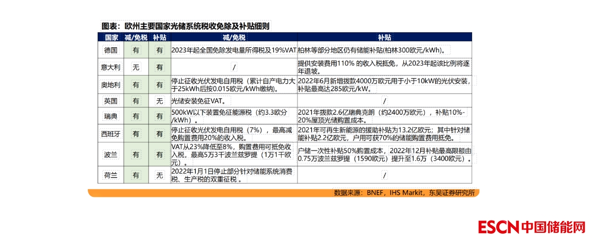 全國免除戶用光伏VAT、所得稅。2022年12月初,德國政府通過了有關(guān)光儲的稅收減免政策:1)在2022年稅年,為符合要求的戶用光伏系統(tǒng)免除發(fā)電量所得稅;2)對所有2023年起投運的戶用光伏儲能系統(tǒng)免除采購、進(jìn)口和安裝過程中產(chǎn)生的增值稅(VAT),此增值稅為19%,在安裝商報價時直接扣除增值稅,配套的儲能系統(tǒng)可同樣享受,但若單獨安裝(含加裝)戶儲不享增值稅豁免。