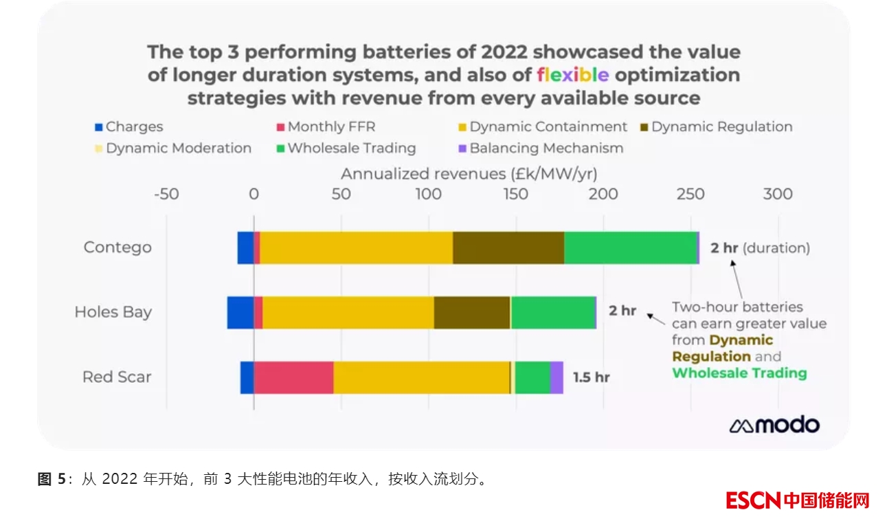 Contego 和 Holes Bay 的時長為 2 小時,而 Red Scar 為 1.5 小時。2022 年的主要成果之一是,已經(jīng)看到持續(xù)時間更長的資產(chǎn)開始賺取比構成英國儲能電站群主體的持續(xù)時間為 1 小時的電池更多的收益。