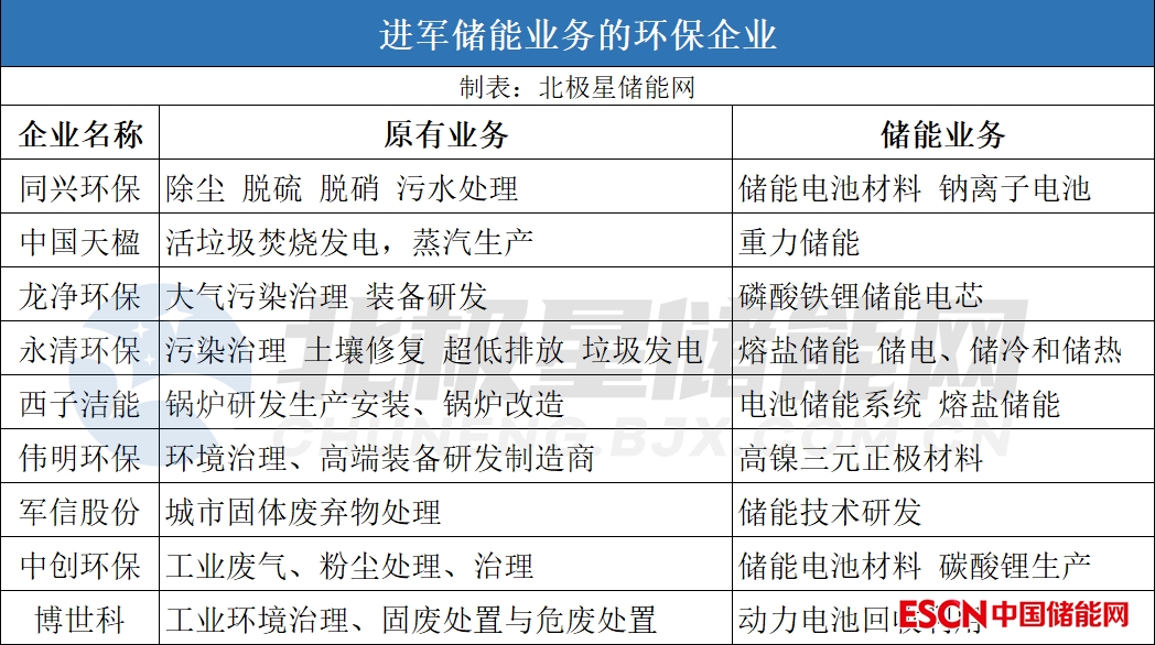 北極星儲能網(wǎng)觀察到,今年以來,企業(yè)投資布局儲能熱情大增,已經(jīng)有幾十家家企業(yè)進軍儲能。尤為值得注意的是,一批環(huán)保企業(yè)組團跨界而來,而且每家企業(yè)的具體入局方式,布局的儲能技術種類、以及儲能產(chǎn)業(yè)環(huán)節(jié)都各具特色。
