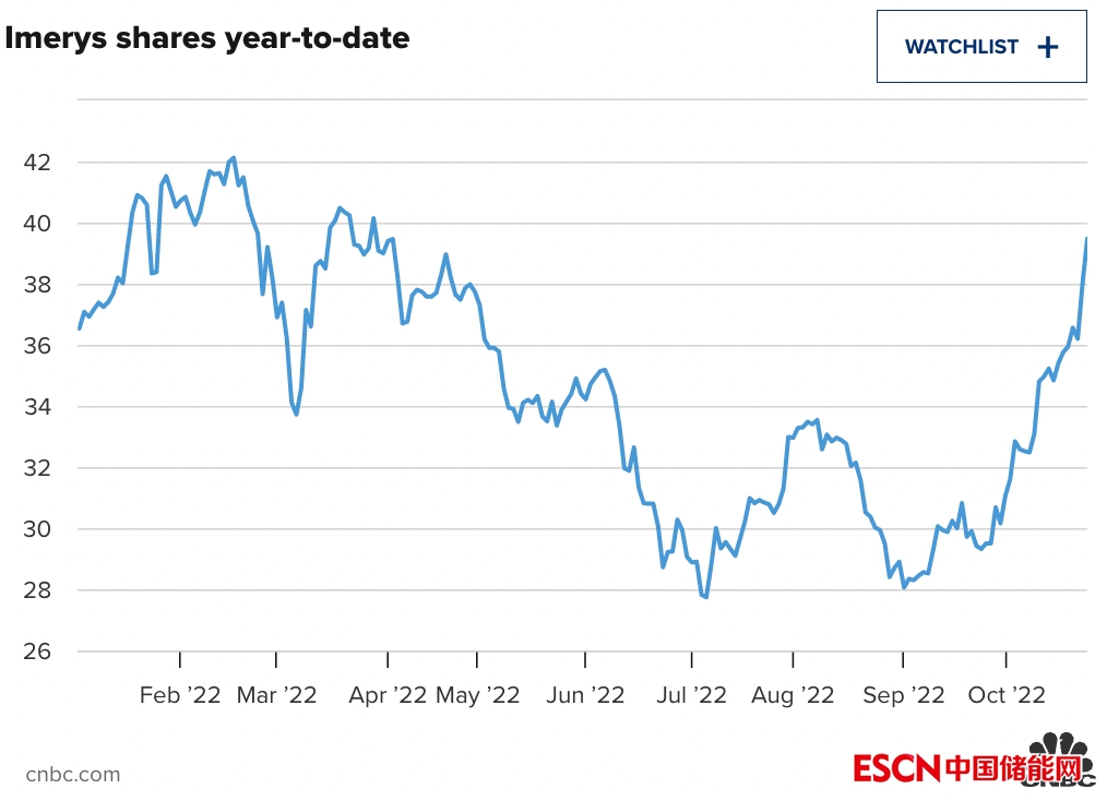 中國儲能網(wǎng)訊:總部位于巴黎的礦產(chǎn)巨頭Imerys公司計(jì)劃開發(fā)一個(gè)鋰項(xiàng)目,希望該項(xiàng)目將有助于滿足歐洲新興電動(dòng)汽車市場的需求并確保供應(yīng)。