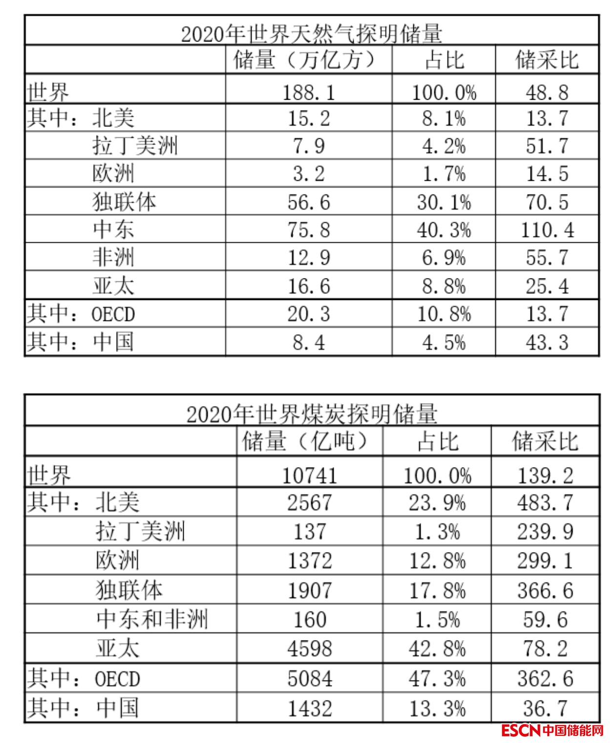 根據(jù)BP世界能源統(tǒng)計(jì)年鑒,截至2020年底,全球石油探明儲(chǔ)量2444億噸,儲(chǔ)采比53.5年;天然氣探明儲(chǔ)量188.1萬(wàn)億立方米,儲(chǔ)采比48.8年;煤炭探明儲(chǔ)量10741億噸,儲(chǔ)采比139.2年。