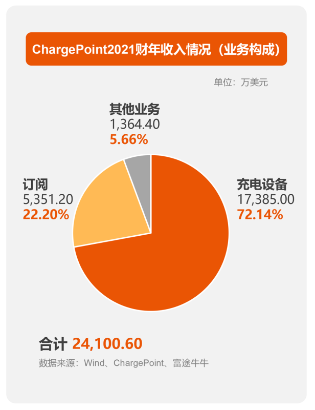 ChargePoint充電設(shè)備銷售收入占了總收入的72.14%,該公司不出售沒有安裝本公司聯(lián)網(wǎng)收費系統(tǒng)的充電樁產(chǎn)品。ChargePoint不自營或持有充電樁和充電站,不通過出售電力來獲取回報,也不通過充電站的停車費獲取收入。