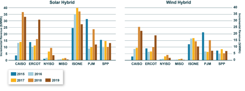 圖9.太陽能和風能混合項目的輔助服務(wù)增量收入(美元/MWh)