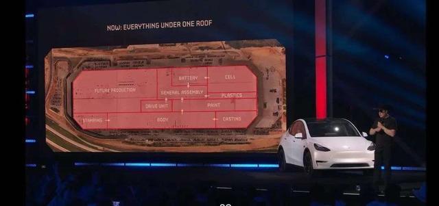 馬斯克將得州工廠比作一塊芯片,表明了其地位之重要。從工廠平面圖可以看出,得州工廠的每一寸土地都物盡其用。從沖壓、焊接到涂裝、總裝,整個(gè)過(guò)程都可在工廠內(nèi)部完成,縮短生產(chǎn)周期的同時(shí)減少了運(yùn)輸成本,這也印證了馬斯克那句話:“進(jìn)入工廠的原材料,化作整車(chē)離開(kāi)工廠(Raw materials in, cars out)?!?