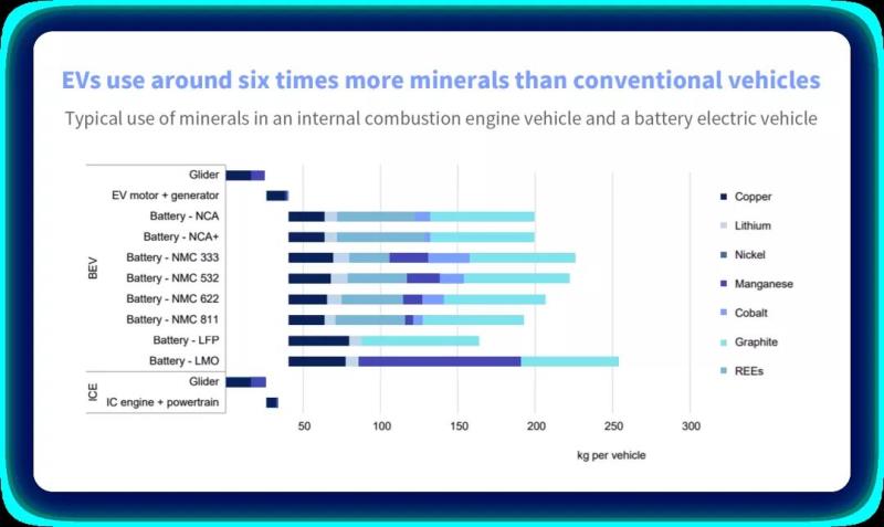 所以,我們回溯5月份IEA寫的電池資源約束報告《The Role of Critical Minerals in Clean Energy Transitions》,詳細(xì)敘述了上端鋰、鎳、鈷還有稀土都制約著電動汽車大發(fā)展。
