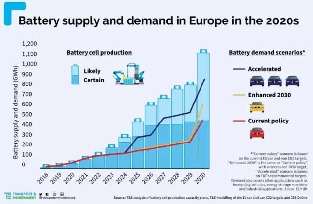 T&E報(bào)告指出,想要達(dá)到如此數(shù)額的年供應(yīng)量并不容易,期間仍然會(huì)嚴(yán)重依賴亞洲電池和技術(shù),這種情況甚至?xí)恢背掷m(xù)到2029-2030年。