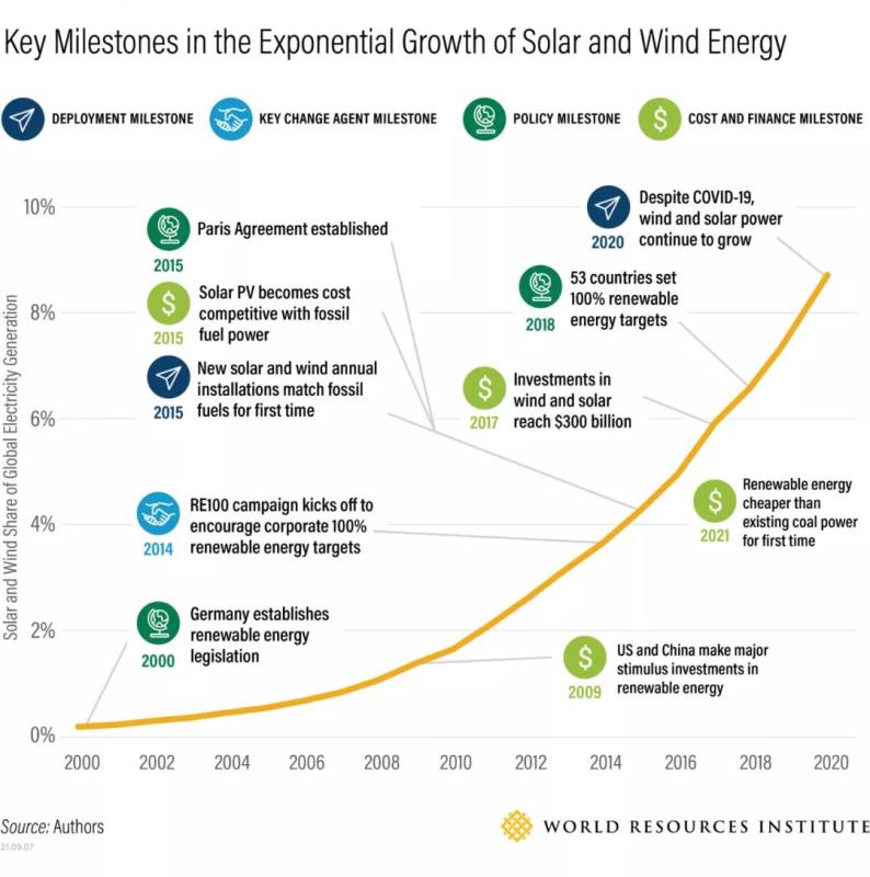 基于可再生能源在過去的指數(shù)增長,我們有理由對其在未來達到氣候目標(biāo)的速度更加樂觀。本文試圖解讀太陽能和風(fēng)能增長背后的原因、已經(jīng)取得了多大的進展,以及需要進一步做些什么。