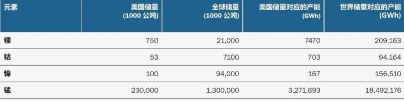 表1:美國(guó)礦產(chǎn)儲(chǔ)量和產(chǎn)能在全球中的占比。