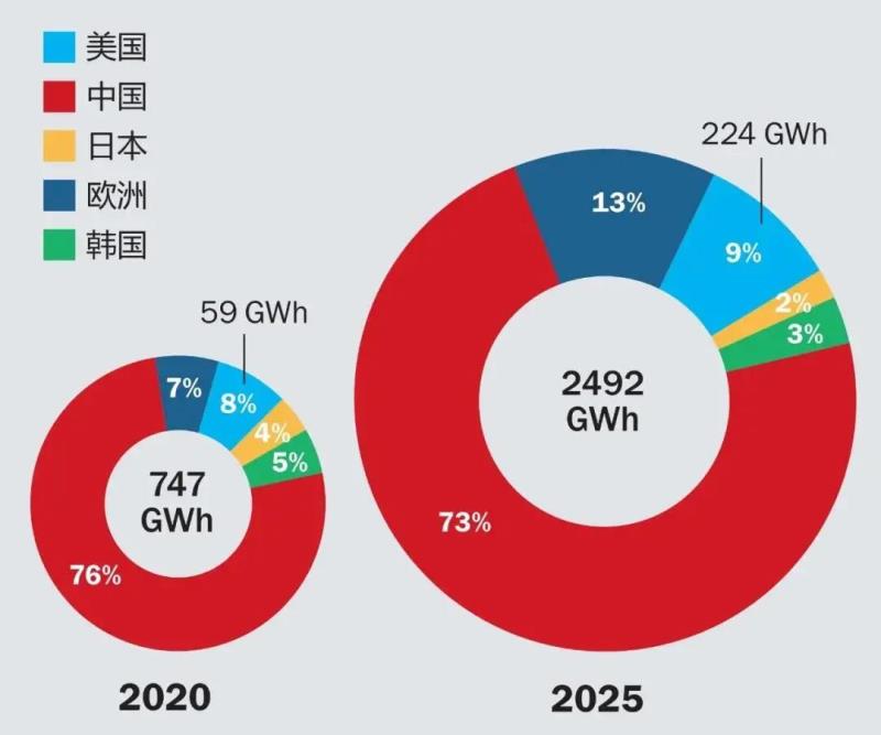 該報(bào)告指出,鋰電行業(yè)目前似乎正處于臨界點(diǎn),自2010年以來(lái)鋰電成本下降了近90%。這項(xiàng)技術(shù)正在影響全球運(yùn)輸市場(chǎng),并有可能在未來(lái)幾十年重塑全球行業(yè)。預(yù)計(jì)到2025年,中國(guó)鋰電產(chǎn)能將達(dá)到1811GWh。