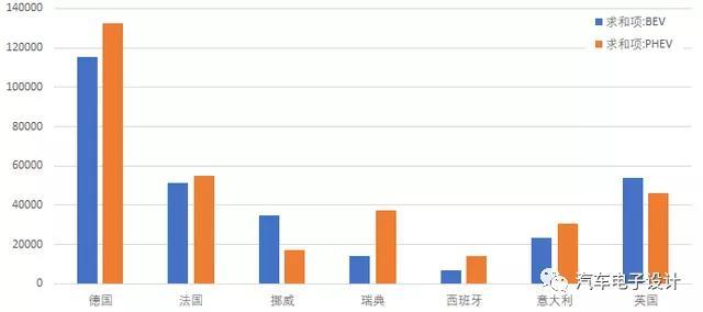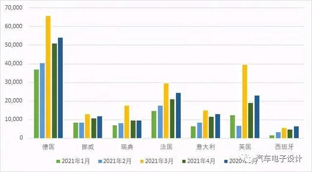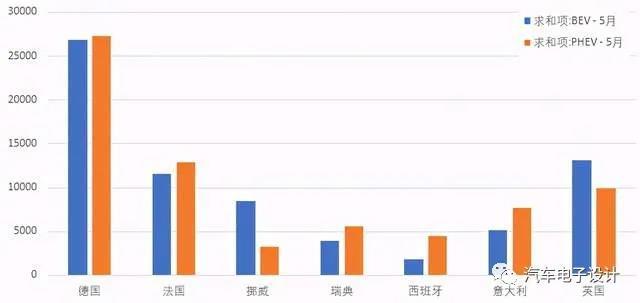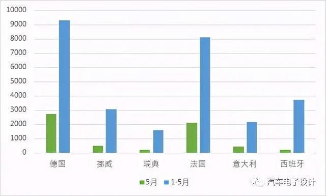 圖2 主要?dú)W洲國家1-5月份的新能源銷量數(shù)據(jù)