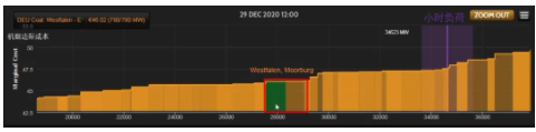 圖2 2020年12月29日德國(guó)日前電力市場(chǎng)機(jī)組優(yōu)先次序曲線