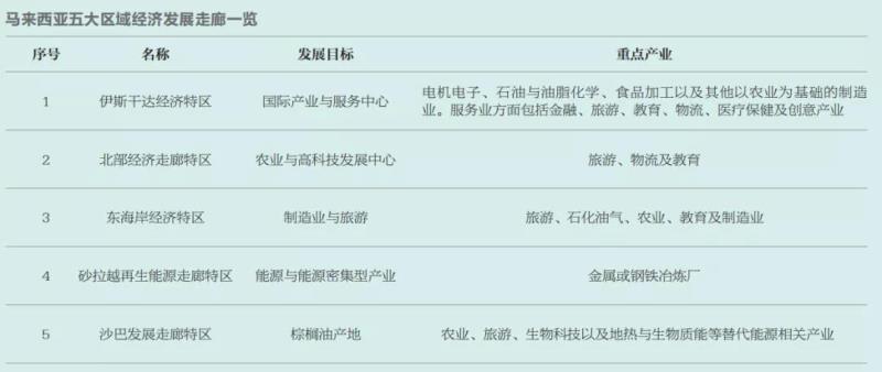 區(qū)域經(jīng)濟(jì)方面,馬來(lái)西亞政府在2006年宣布設(shè)立五個(gè)區(qū)域經(jīng)濟(jì)發(fā)展走廊,根據(jù)各區(qū)域的產(chǎn)業(yè)與自然條件,制定不同的發(fā)展策略,提供勞動(dòng)力、土地、資本等優(yōu)惠政策,吸引外商投資重點(diǎn)產(chǎn)業(yè)。