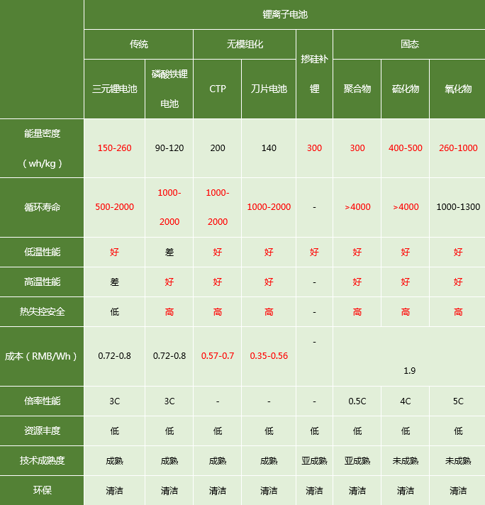 表三:傳統(tǒng)鋰離子電池與新技術(shù)對(duì)比