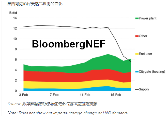 盡管地區(qū)天然氣產(chǎn)量一夜之間下降了60億立方英尺/天,腰斬50%,但市場有效地將燃料供應(yīng)轉(zhuǎn)移到需求中心。進入LNG終端的進料氣需求減少50%,轉(zhuǎn)而用作供暖和發(fā)電勇氣。與30天滾動平均值相比,2月15日-21日一周內(nèi)供暖用氣平均增長40%,發(fā)電用氣增長90%。