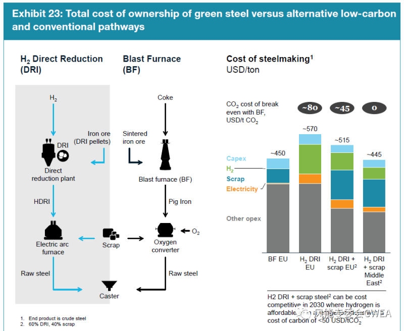 與替代性低碳途徑和傳統(tǒng)途徑相比,低碳鋼的總擁有成本