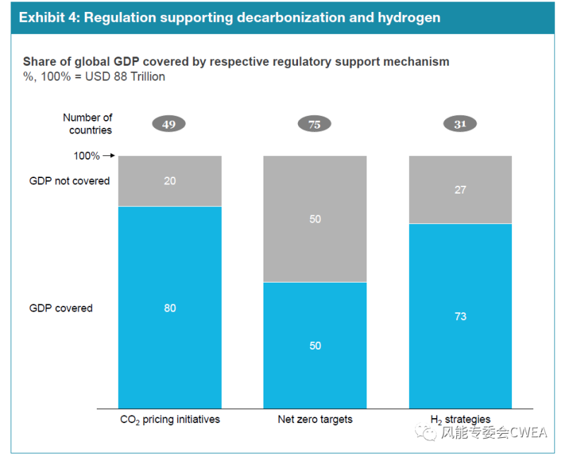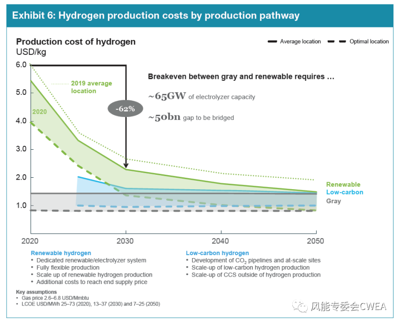 要實(shí)現(xiàn)這一遠(yuǎn)景目標(biāo),有兩個因素至關(guān)重要:首先政府需要維持一份穩(wěn)固的脫碳承諾,在財(cái)政支持、監(jiān)管和明確的氫能戰(zhàn)略和目標(biāo)方面做出行動,轉(zhuǎn)化為長期的監(jiān)管框架。另一個是氫能的部署方法必須針對關(guān)鍵目標(biāo)進(jìn)行“解鎖”(unlock),比如降低制氫和運(yùn)輸成本,這對整個行業(yè)都會產(chǎn)生顯著影響。