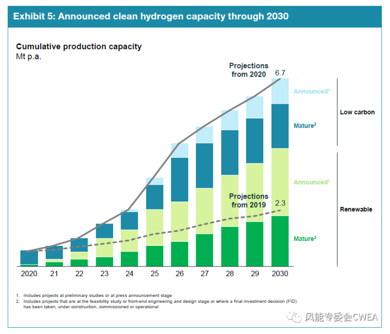 2030年前已宣布的氫能項(xiàng)目(分為可再生能源氫和低碳?xì)洌?