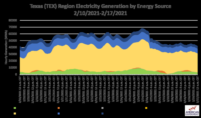 根據(jù)評級,煤炭和天然氣的可靠性表現(xiàn)不如核電,但其評級均過了C,不如核電,但遠(yuǎn)超風(fēng)能。最重要的是,得州天然氣發(fā)電產(chǎn)能超過77千兆瓦(GW),煤炭發(fā)電產(chǎn)能近20千兆瓦(GW)。因此,C級表現(xiàn)力依然讓這兩者成了危機(jī)期間最大的電力來源。