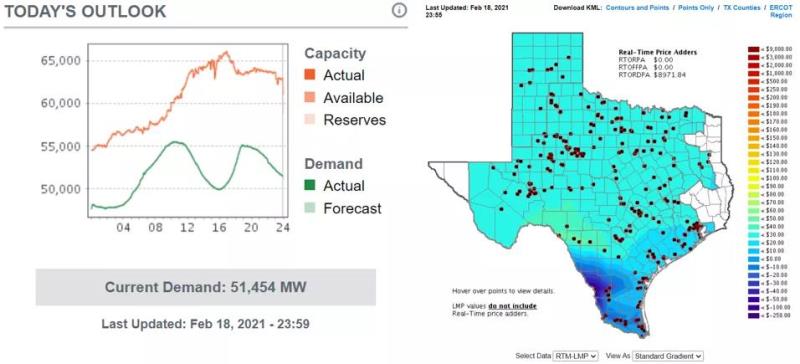 中國儲能網(wǎng)訊:美國德克薩斯州的大寒潮最終演變成為一場嚴(yán)重的停電事故,并且引發(fā)了全世界的關(guān)注。截至北京時(shí)間2月19日,從ERCOT的官網(wǎng)來看,電力需求和供給已經(jīng)恢復(fù)到了正常水平,電價(jià)也不再出現(xiàn)9000美元的極端情況。