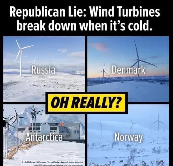 但正好為了對抗美國民主黨新總統(tǒng)拜登大力發(fā)展清潔能源的的政策,共和黨今天開始統(tǒng)一口徑:德州停電因為風能不可靠,冷了就不能用,所以不要搞清潔能源。