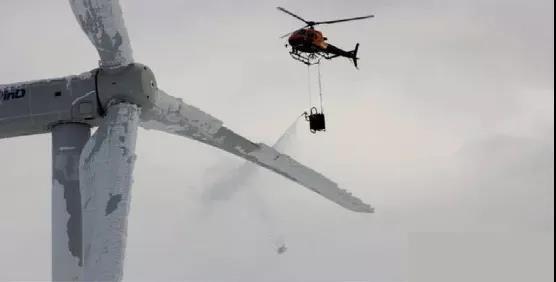 一張直升機為風力渦輪機除冰的照片在網(wǎng)上瘋傳,網(wǎng)民聲稱照片顯示一種化學解決方案被應用于德克薩斯州的一個大型風力發(fā)電機上。