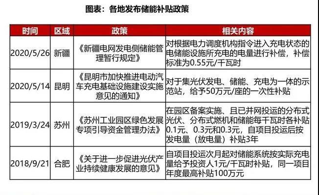 各地出臺政策扶持儲能發(fā)展,儲能逆變器前景廣闊。2020年,多個省份發(fā)布政策提出儲能配置的要求,以緩解電力消納問題,儲能逆變器市場前景廣闊。像新疆、昆明、蘇州等地推出對光伏儲能的補貼政策,新疆電儲能設施所充電的電量給予0.55元/千瓦時的補償,昆明對于集光伏發(fā)電、儲能、充電為一體的示范站,給予50萬元/座的一次性補貼等。