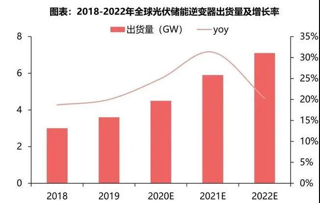 逆變器存量替換潛力巨大:光伏組件的壽命一般在20-25年,而逆變器中的IGBT等部件壽命在10-15年左右,在組件的壽命周期中,至少需要更換一次逆變器。隨著時間推移,逆變器更換需求將迎來爆發(fā),根據(jù)我們的測算,在2020年全球逆變器更換市場規(guī)模約有7.1GW,2025年將增長至37.3GW。