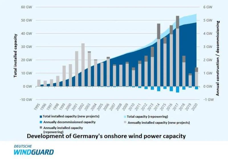 2020年,總共有3.3吉瓦風電項目獲得了許可證,與2019年的1.9吉瓦相比,這是一個強勁的增長。根據(jù)行業(yè)估計,到2025年,老舊風電的退役將達到14吉瓦,這意味著需要更多的風電裝機才能滿足能源轉(zhuǎn)型的需要。