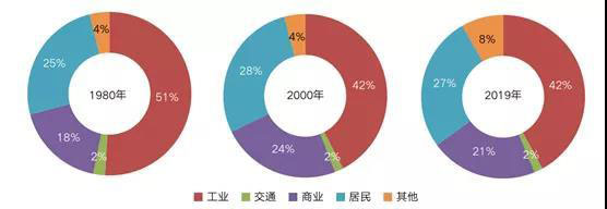 圖1-2 1980年、2000年、2019年全球分部門用電結(jié)構(gòu)變化