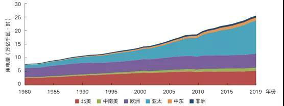 圖1-1 1980—2019年分地區(qū)用電量增長