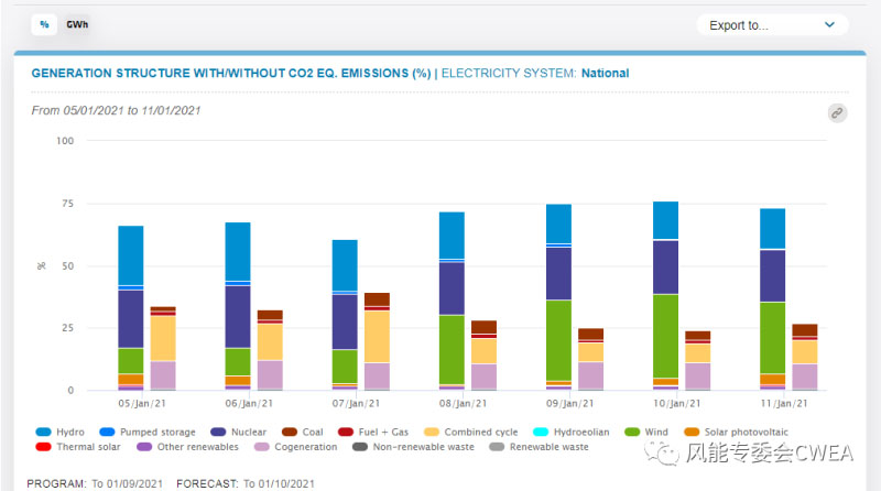在西班牙,12月往往有利于清潔能源的生產(chǎn)。12月風(fēng)力發(fā)電量達(dá)到7455 GWh,比去年同期高36.1%,占西班牙全國(guó)發(fā)電量的31.4%。