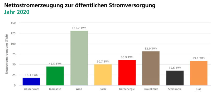 數(shù)據(jù)顯示,2020年風(fēng)力發(fā)電廠(尤其是陸上發(fā)電廠)為德國(guó)2020年的電力市場(chǎng)做出了最大貢獻(xiàn),其中陸上和海上風(fēng)力發(fā)電合計(jì)占到27.4%的份額;光伏發(fā)電占9.7%;其余的12.2%由生物質(zhì)能,水力發(fā)電和其他可再生能源構(gòu)成的。