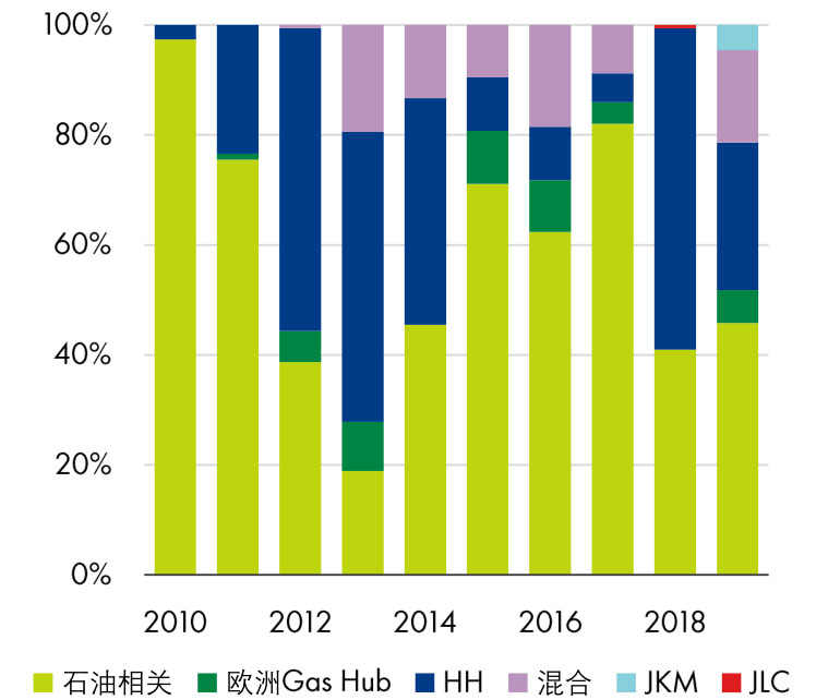 圖6 2010~2019年新LNG合約量中定價(jià)方式組成(按價(jià)格指數(shù))